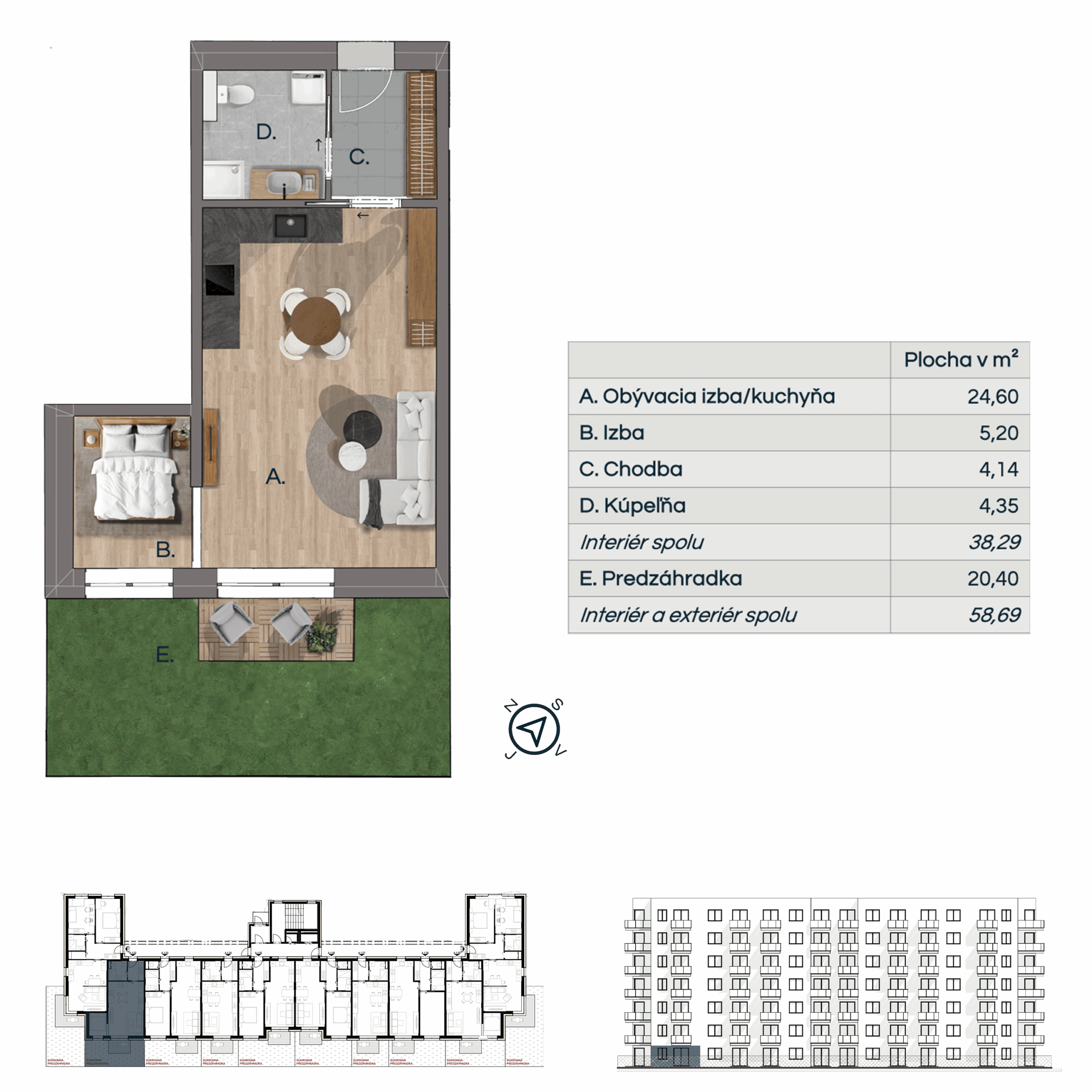 Pri rezervácii 1 izbového bytu je možné nehnuteľnosť kúpiť bez parkovacieho miesta.