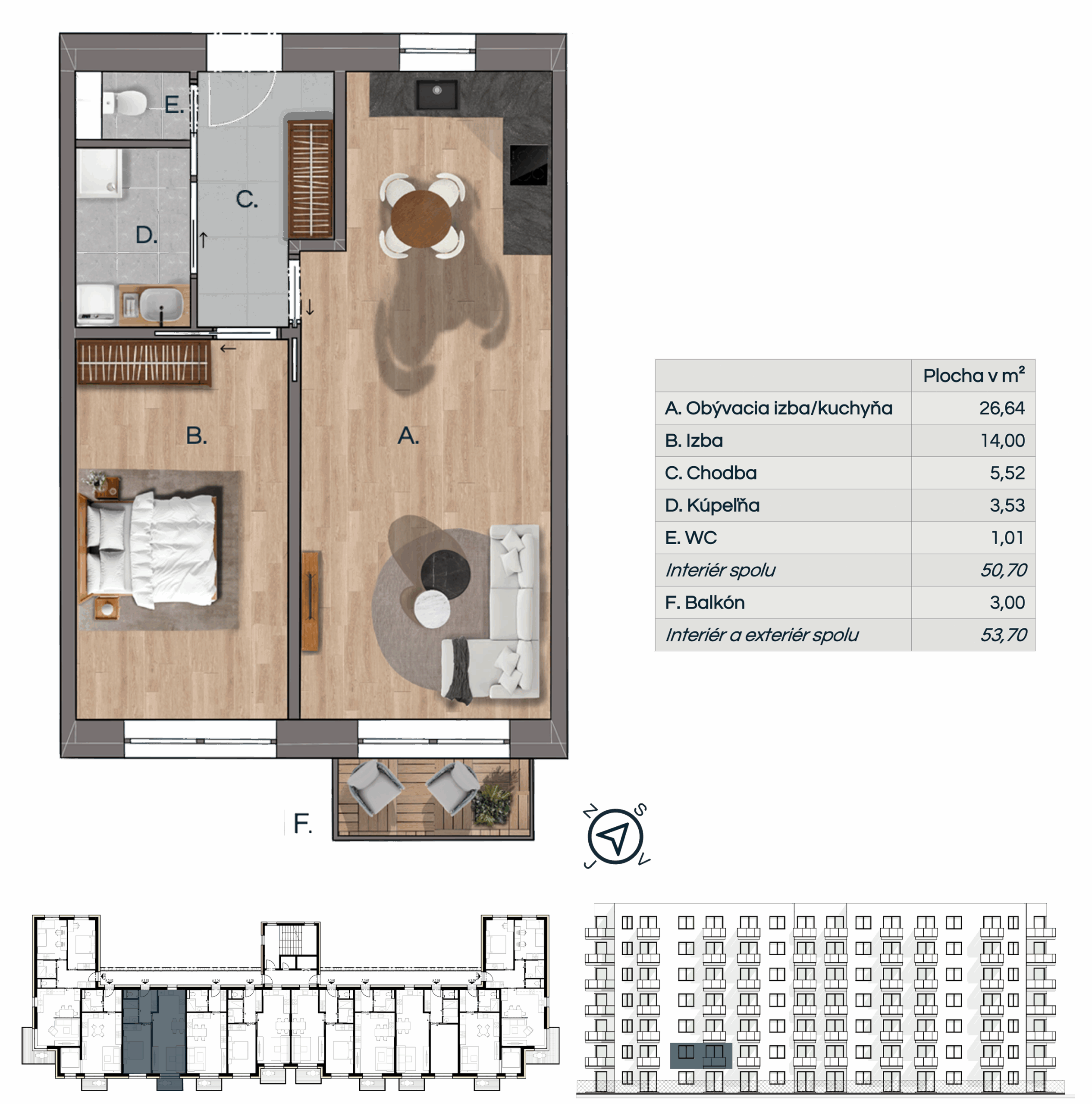 * vizualizácie sú určené len na ilustračné účely, súčasti štandardu bytu sú uvedené v konfigurátori
