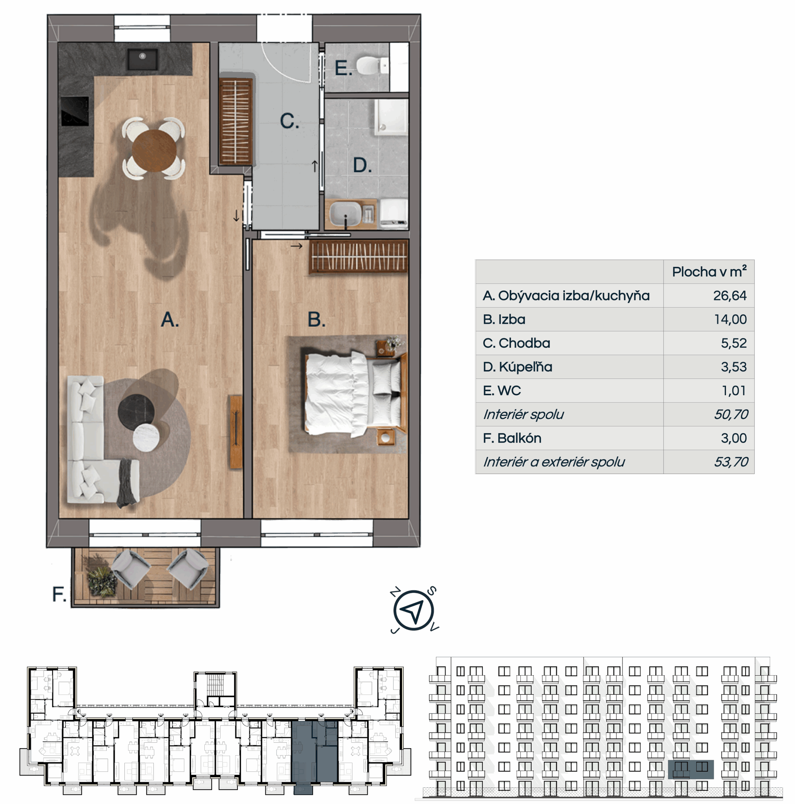 Pri rezervácii 1,5 a viac izbového bytu sú v cene nehnuteľnosti zahrnuté 2 parkovacie miesta.