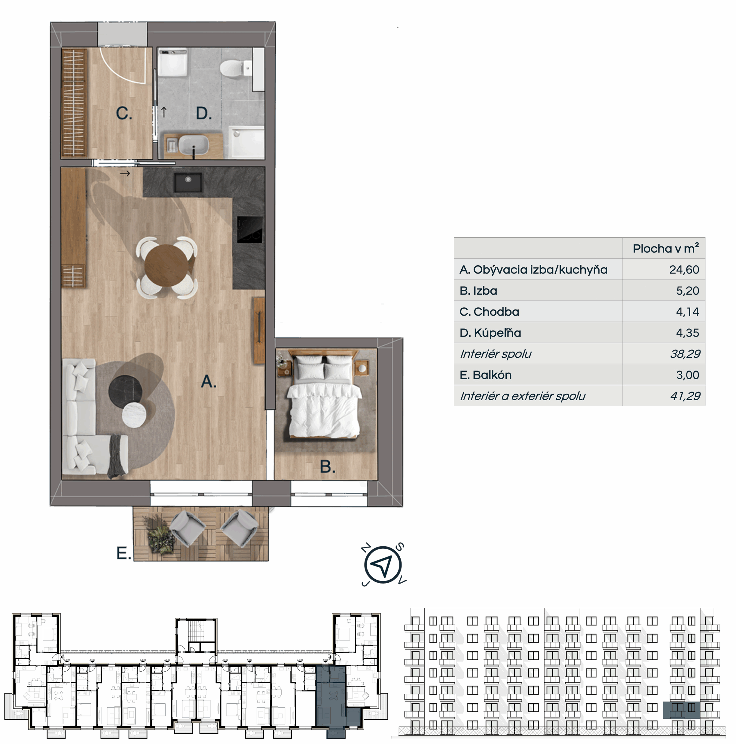 Pri rezervácii 1 izbového bytu je možné nehnuteľnosť kúpiť bez parkovacieho miesta.