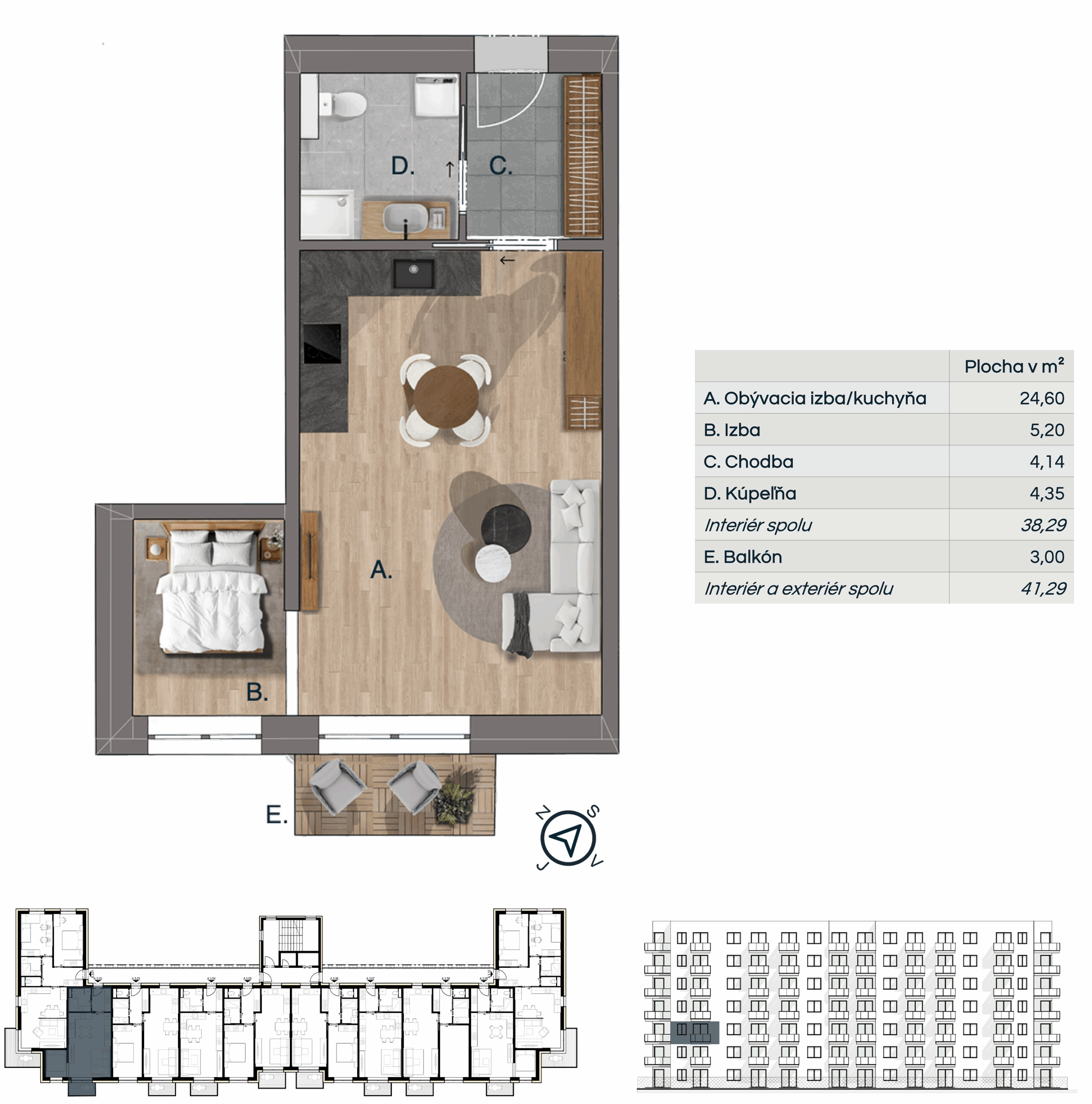 Pri rezervácii 1 izbového bytu je možné nehnuteľnosť kúpiť bez parkovacieho miesta.