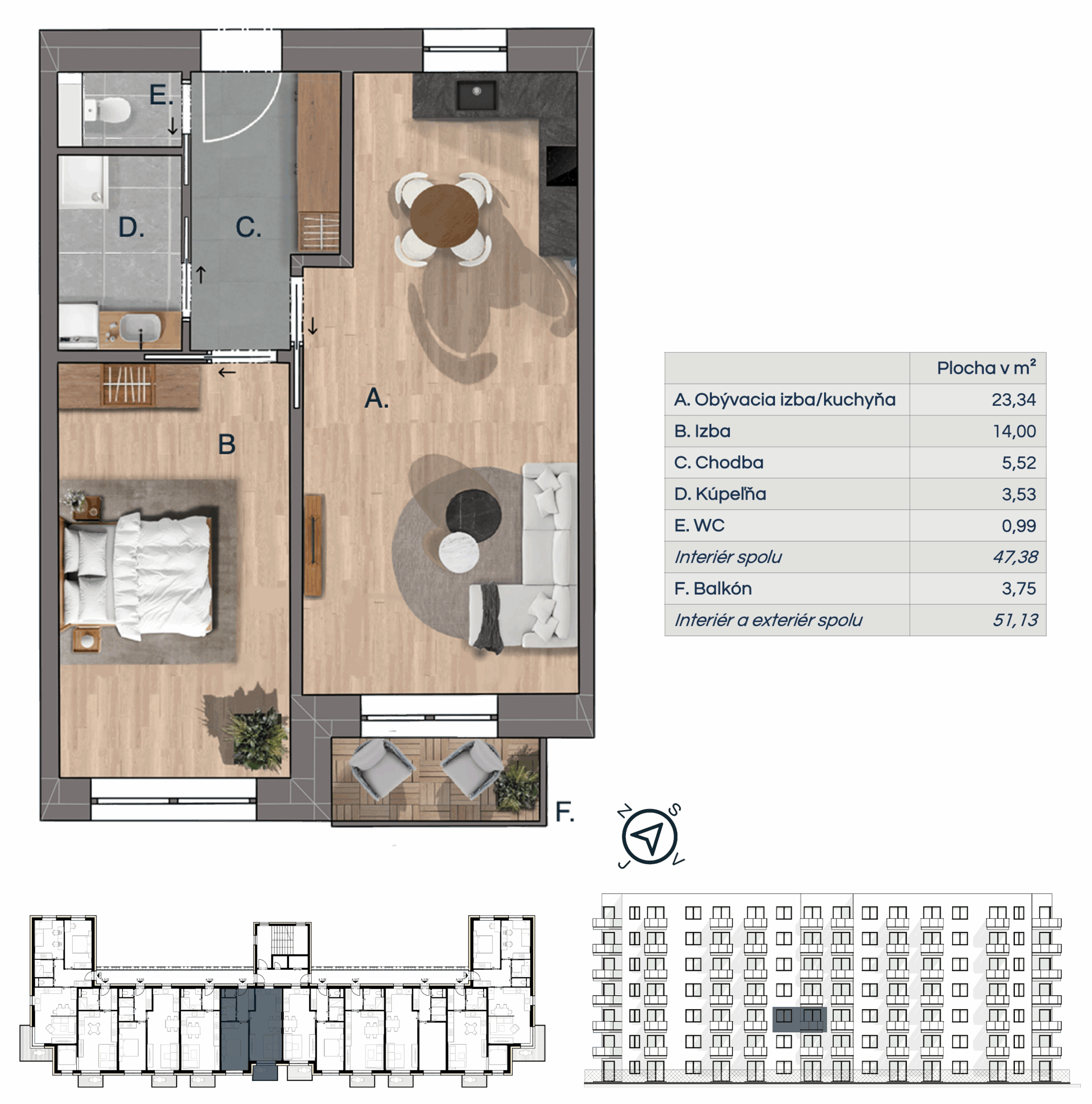 * vizualizácie sú určené len na ilustračné účely, súčasti štandardu bytu sú uvedené v konfigurátori