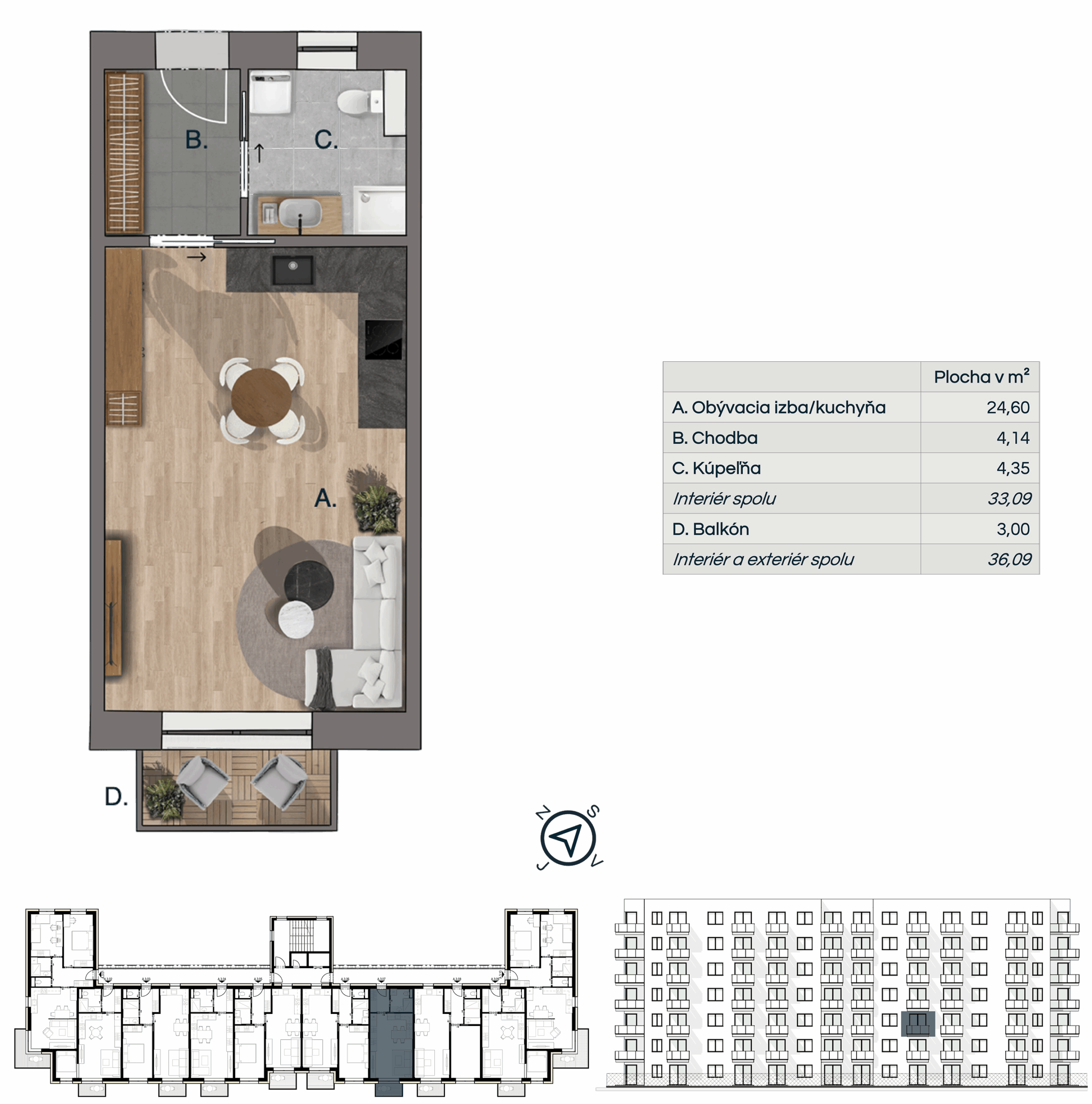 * vizualizácie sú určené len na ilustračné účely, súčasti štandardu bytu sú uvedené v konfigurátori