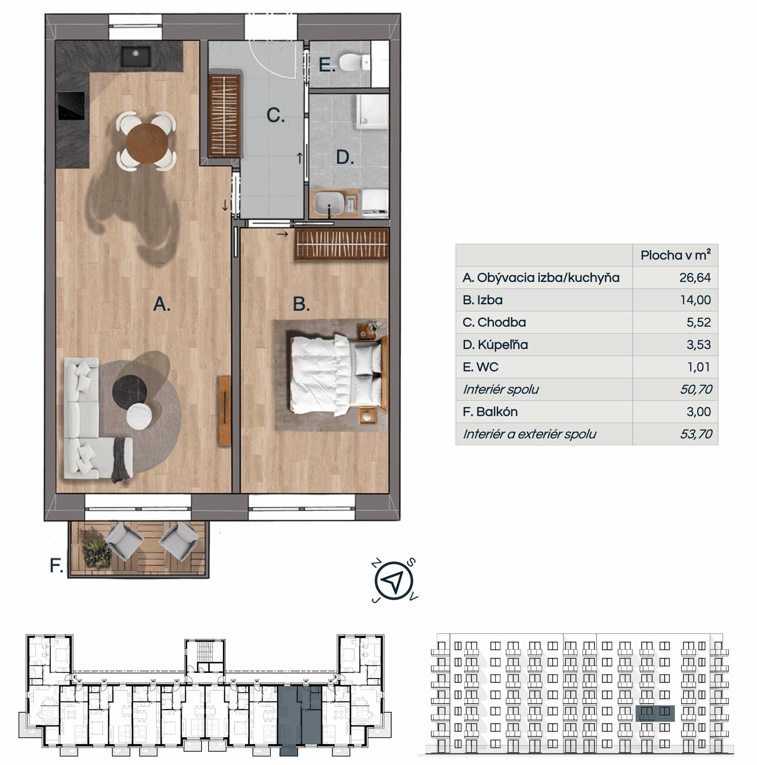 * vizualizácie sú určené len na ilustračné účely, súčasti štandardu bytu sú uvedené v konfigurátori