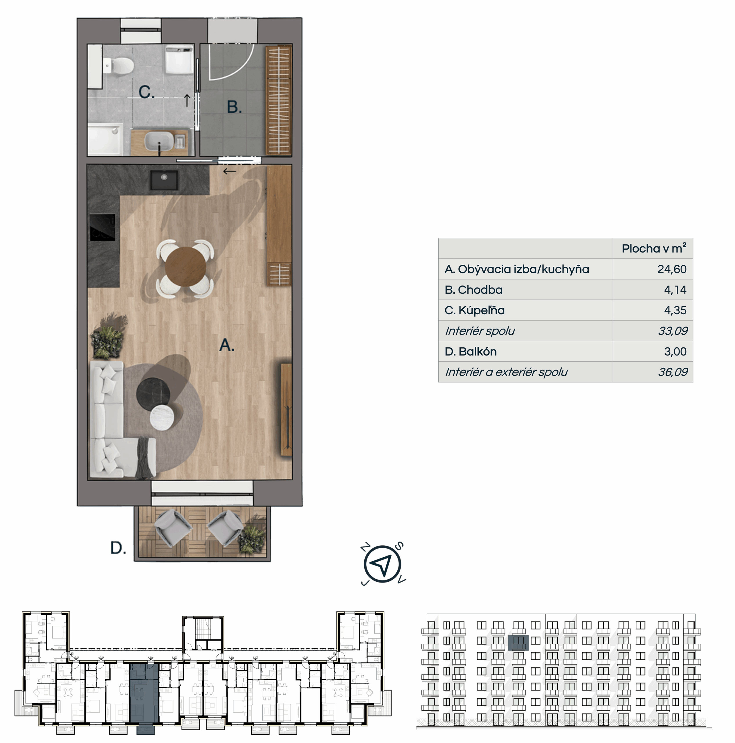* vizualizácie sú určené len na ilustračné účely, súčasti štandardu bytu sú uvedené v konfigurátori