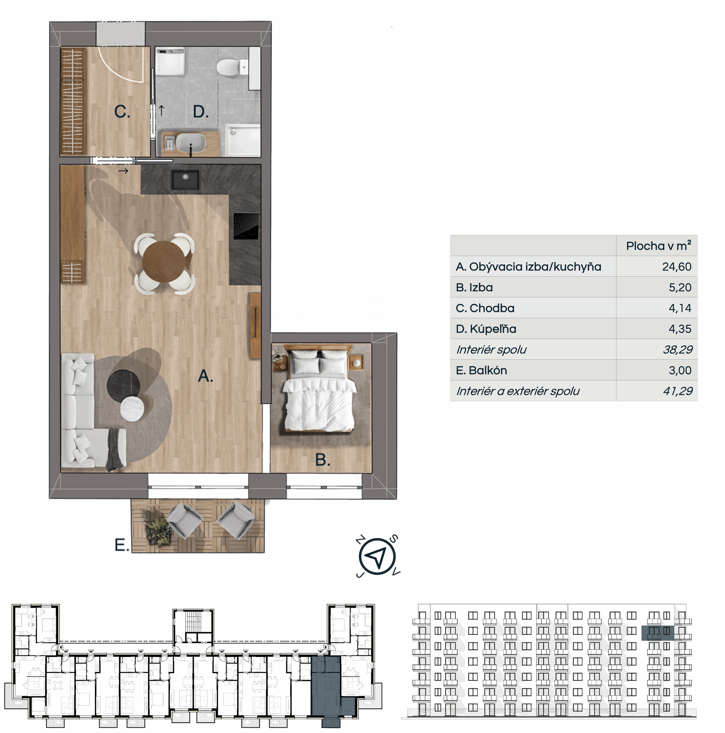 Pri rezervácii 1 izbového bytu je možné nehnuteľnosť kúpiť bez parkovacieho miesta.